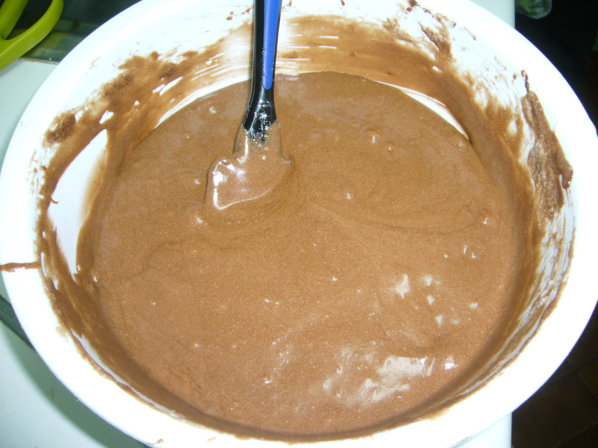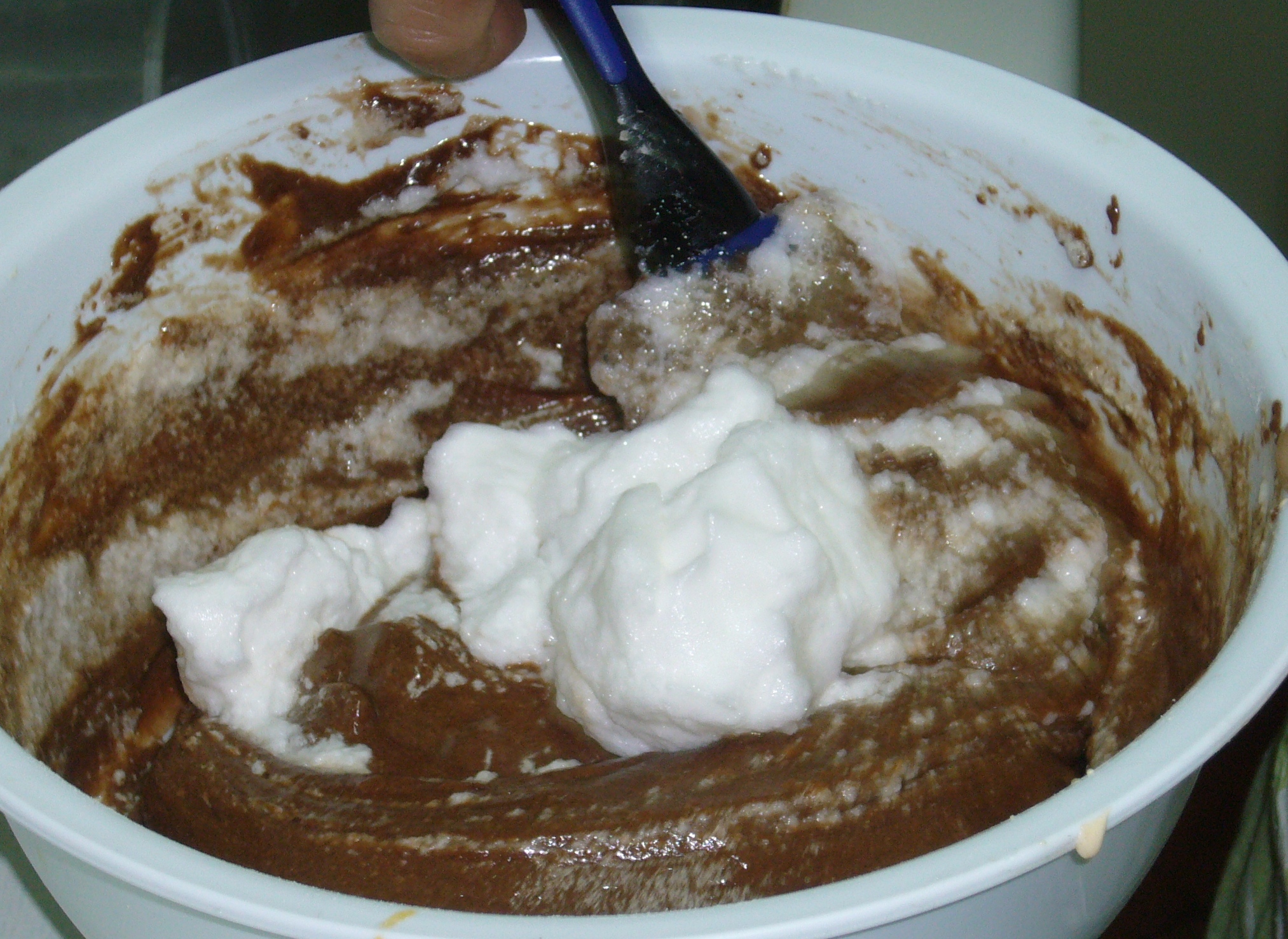 Añadir el chocolate fundido, las nueces troceadas y la harina tamizada.