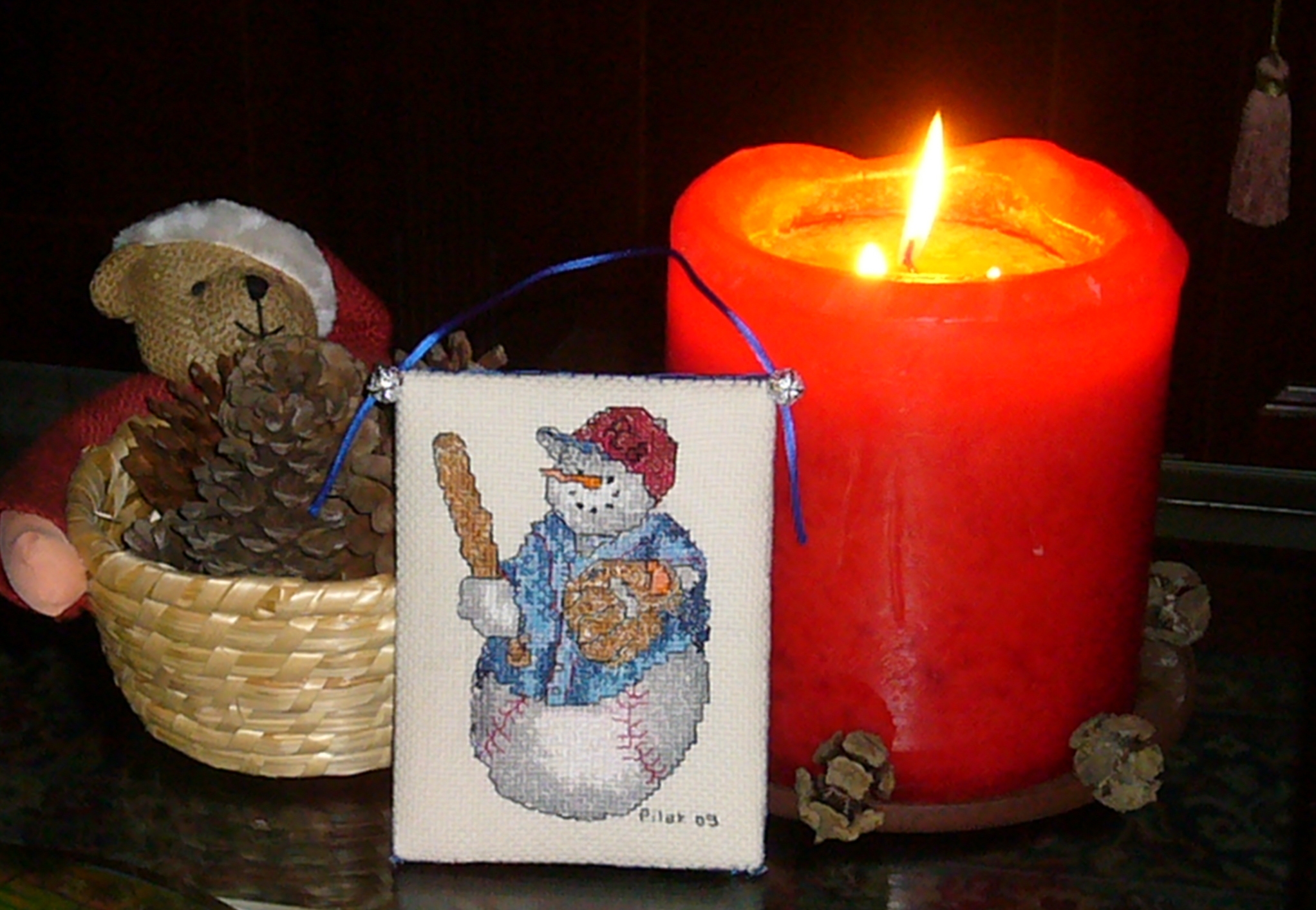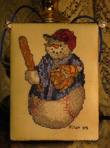 Creo que ya comenté en algún post que mis hijos juegan a béisbol y… cómo no !! debía hacer algún detalle navideño relacionado con este deporte . Después de mucho bucear por el mar cibernético encontré este simpático muñeco de nieve al que personalicé con los colores del equipo de mis hijos, el Futbol Club Barcelona.