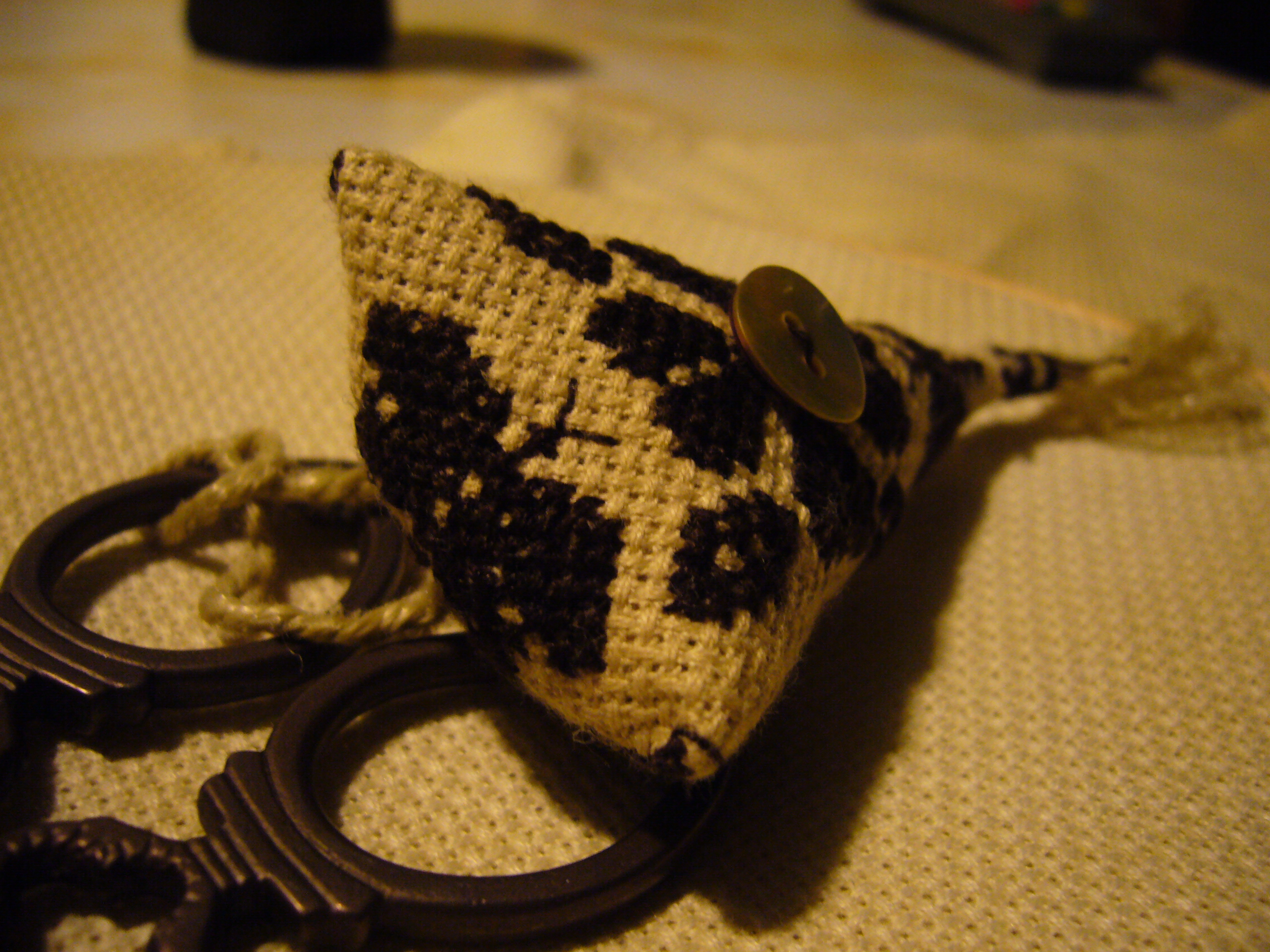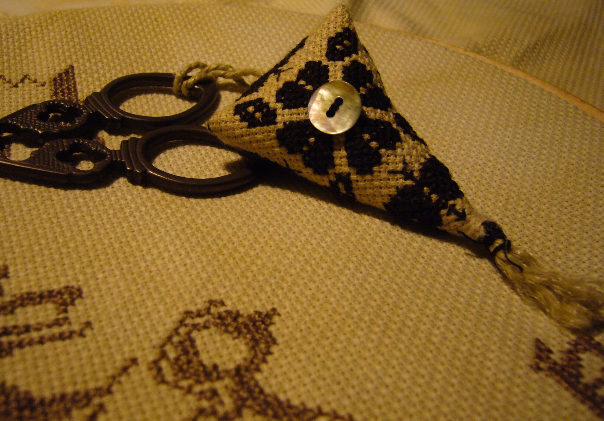 El mini SAL de esta semana que propone Karynep en SAL Bordemos juntas es este fob para las tijeras. Lo he bordado con DMC 3371 sobre tela Aida teñida con te.