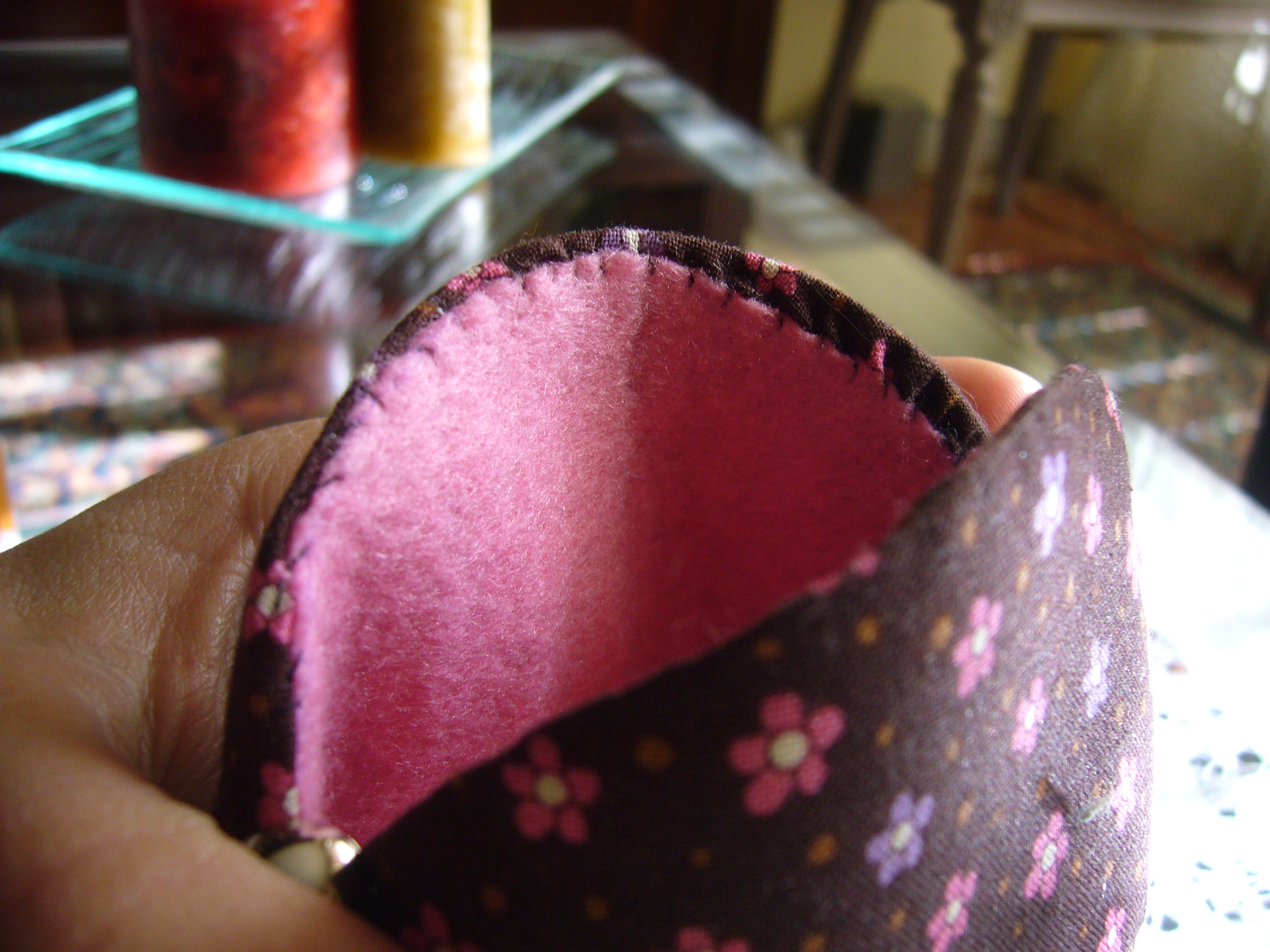 El interior lo forré con fieltro (en una de los tutoriales lo indicaba) ya que me pareció mucho más fácil y rápido de hacer.