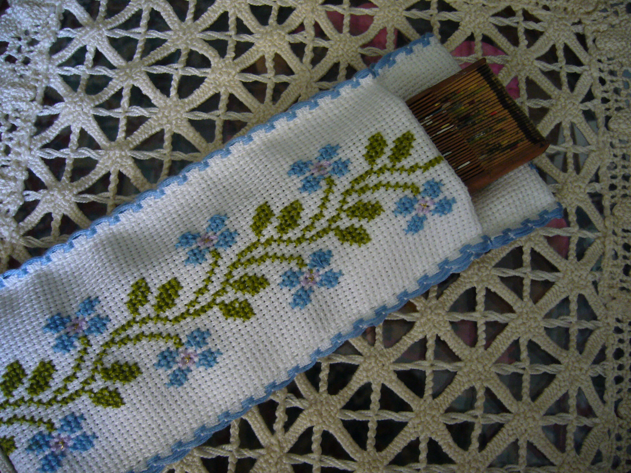 El motivo de Creative Cross Stitch Challenge #4 de esta quincena es una cenefa de flores. He decorado con ella  una funda para guardar el abanico y así tenerlo protegido dentro del bolso.