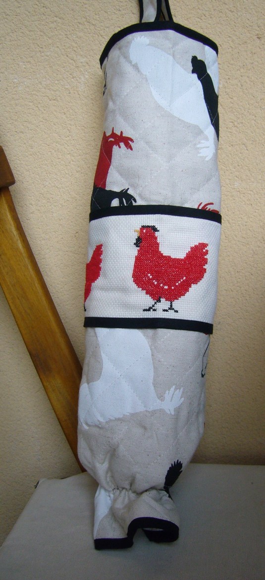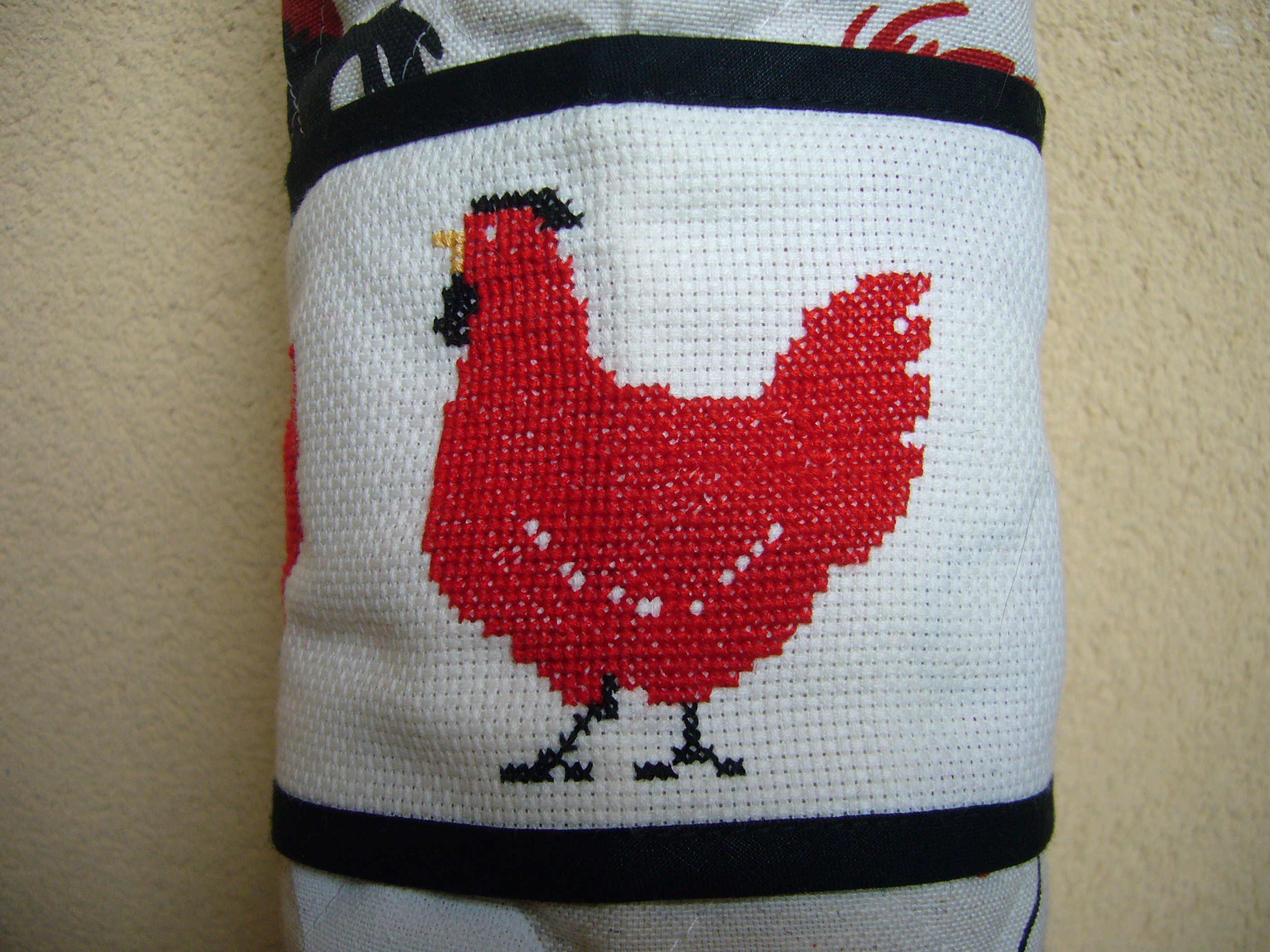 Este fin de semana he aprovechado para bordar en un porta – bolsas unas gallinas a juego con el estampado de la tela. La bolsa la había comprado hace mucho pero a la espera de encontrar la gallina ideal , la fui dejando en el olvido.