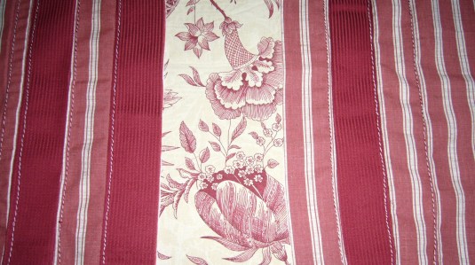 Ya he terminado el 1er objetivo del SAL propuesto por Raquel para hacer un neddle keeper. Para la tela interior he elegido un estampado de flores y para las telas de los bolsillos laterales, una a rayas y otra lisa . Como denominador común entre ellas el color granate.