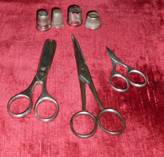 Esta mañana he ido a curiosear por los puestos que pueblan els Encants Vells de Barcelona ( Fira del Bellcaire) y después del consiguiente regateo he comprado tres tijeras para la «cole» y 4 dedales.