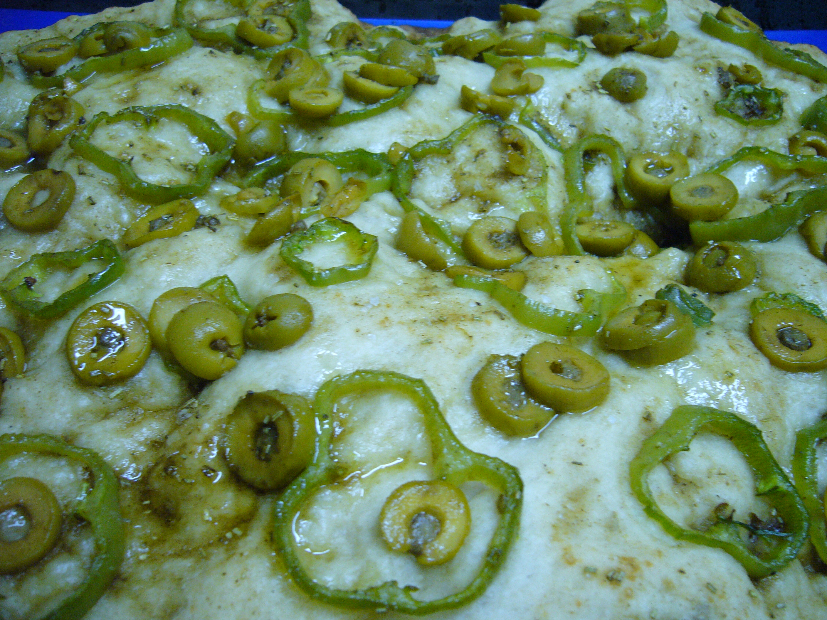FOCACCIA CON PIMIENTO VERDE Y ACEITUNAS