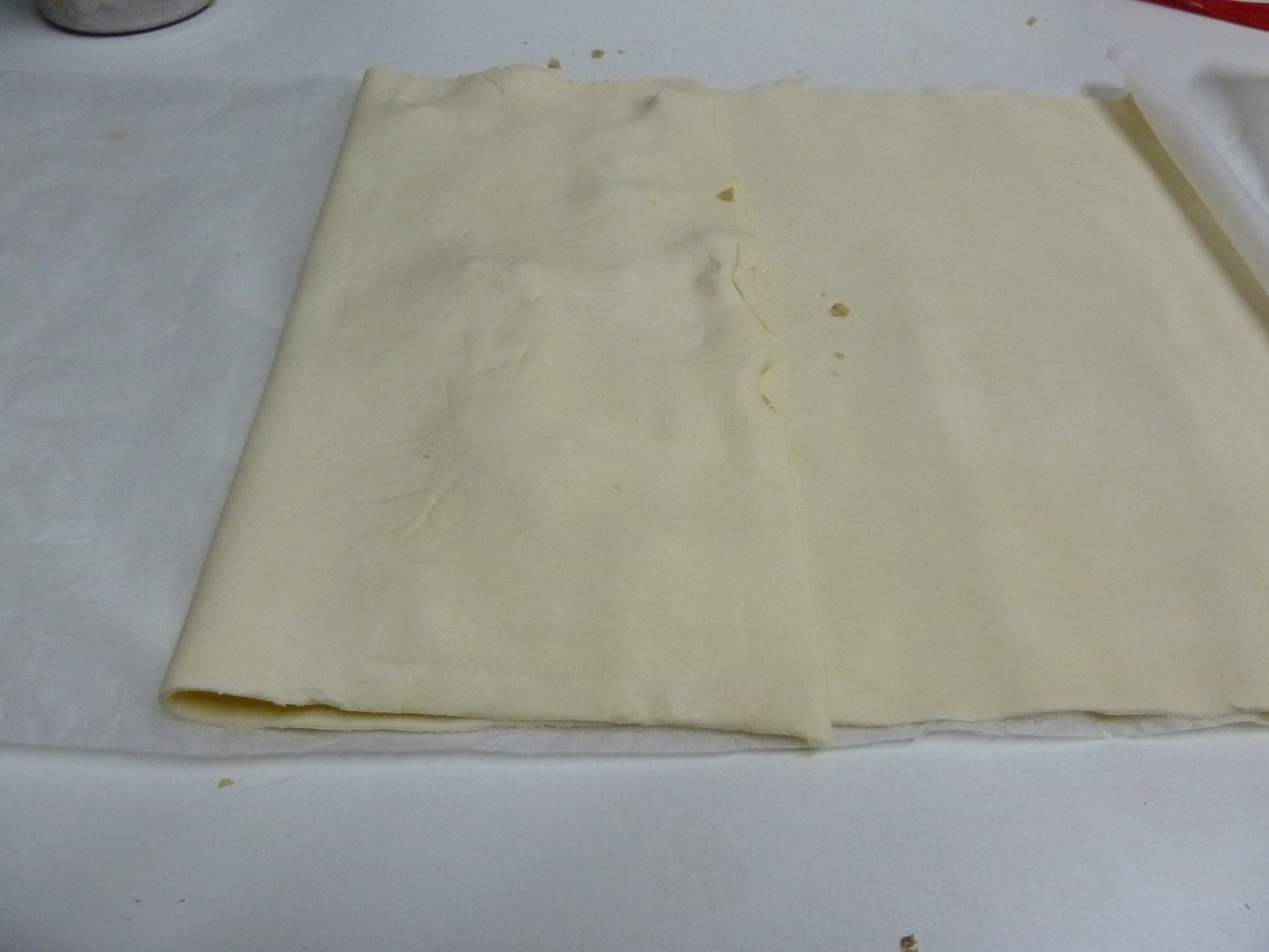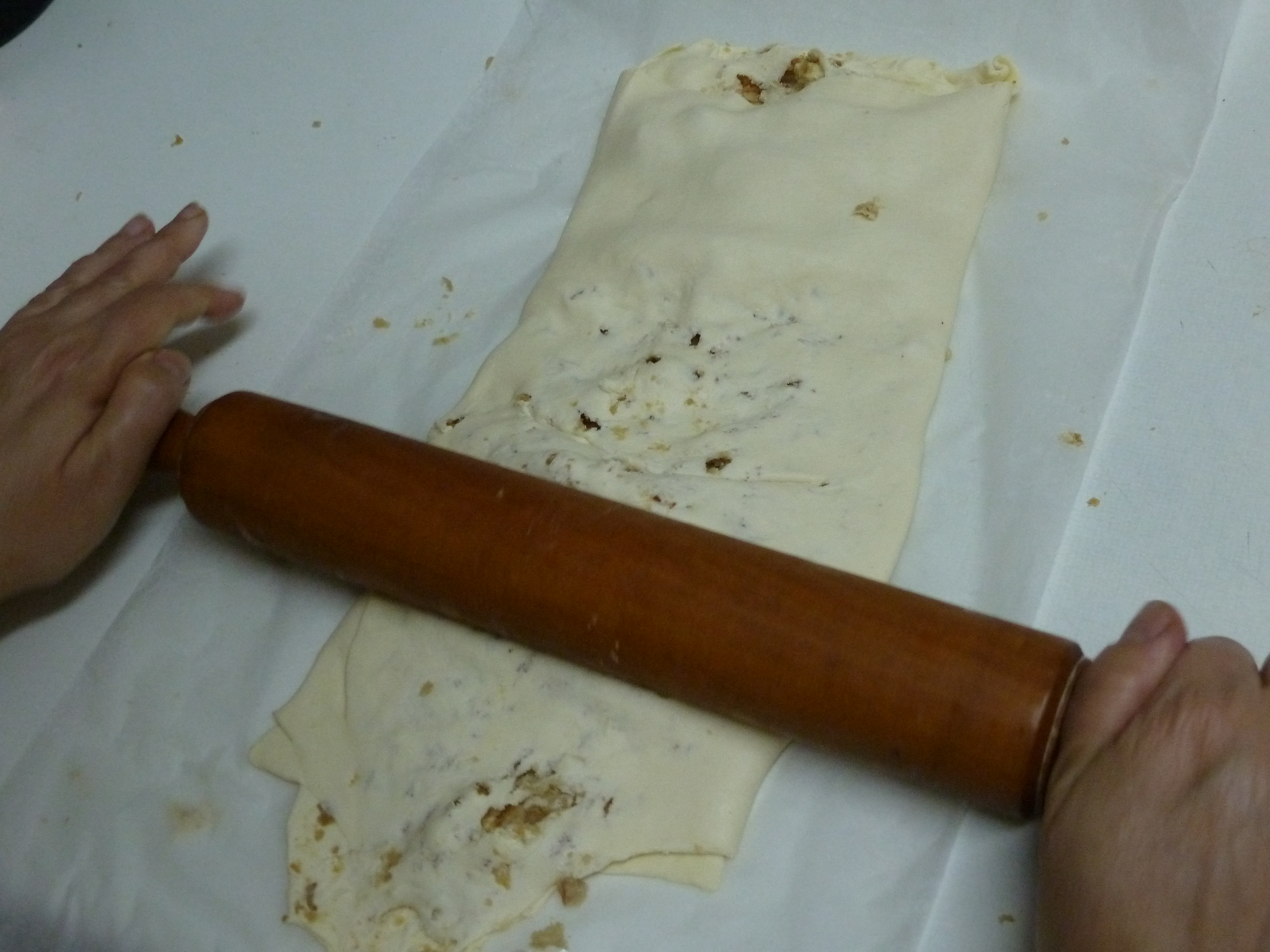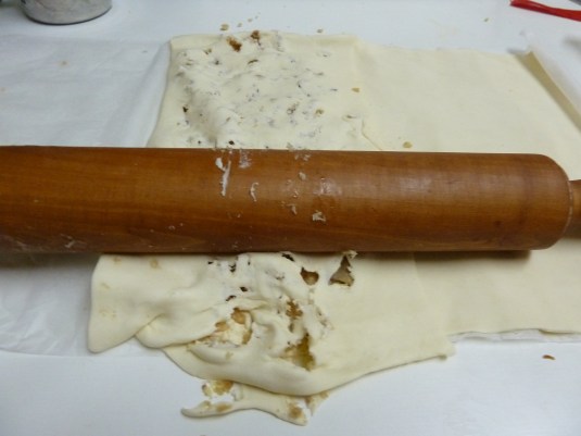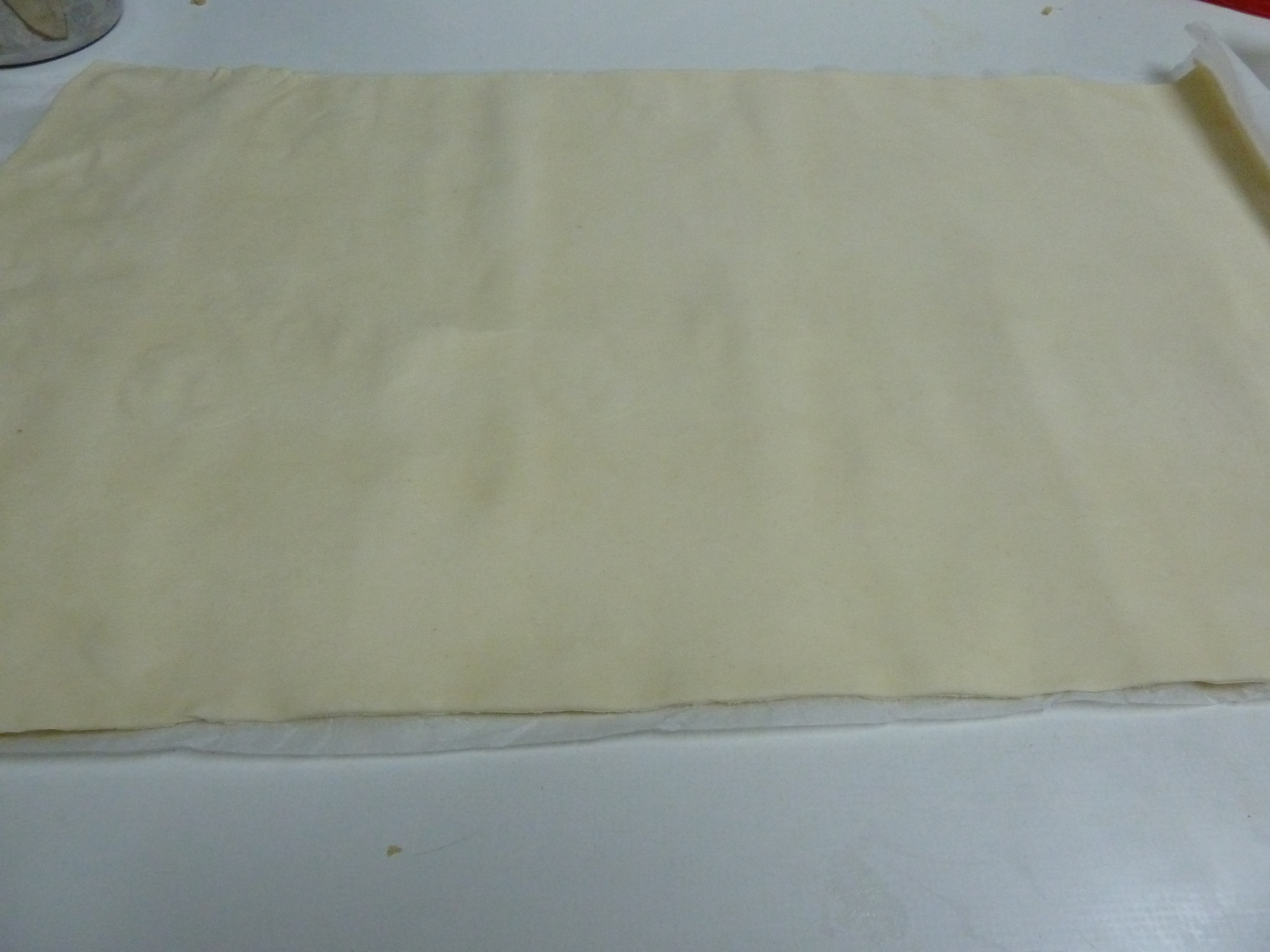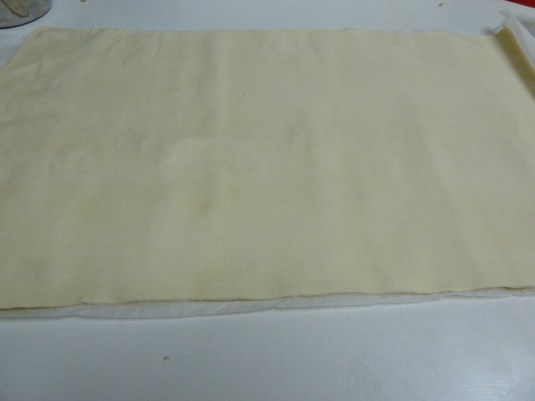 Estirar el hojaldre con un rodillo para darle forma rectangular