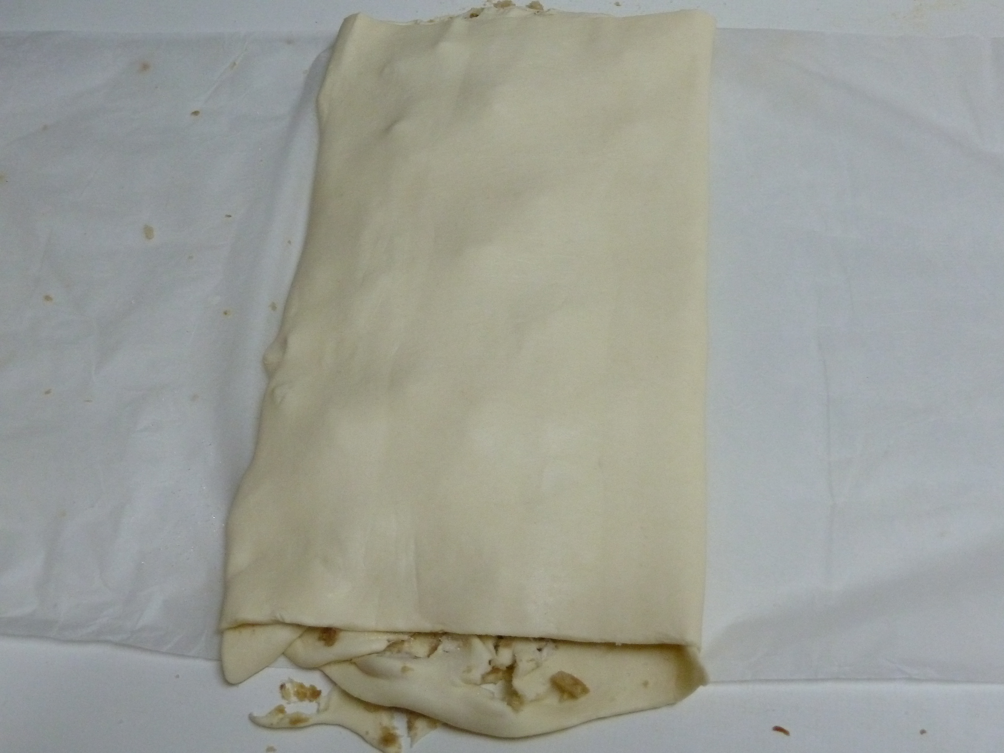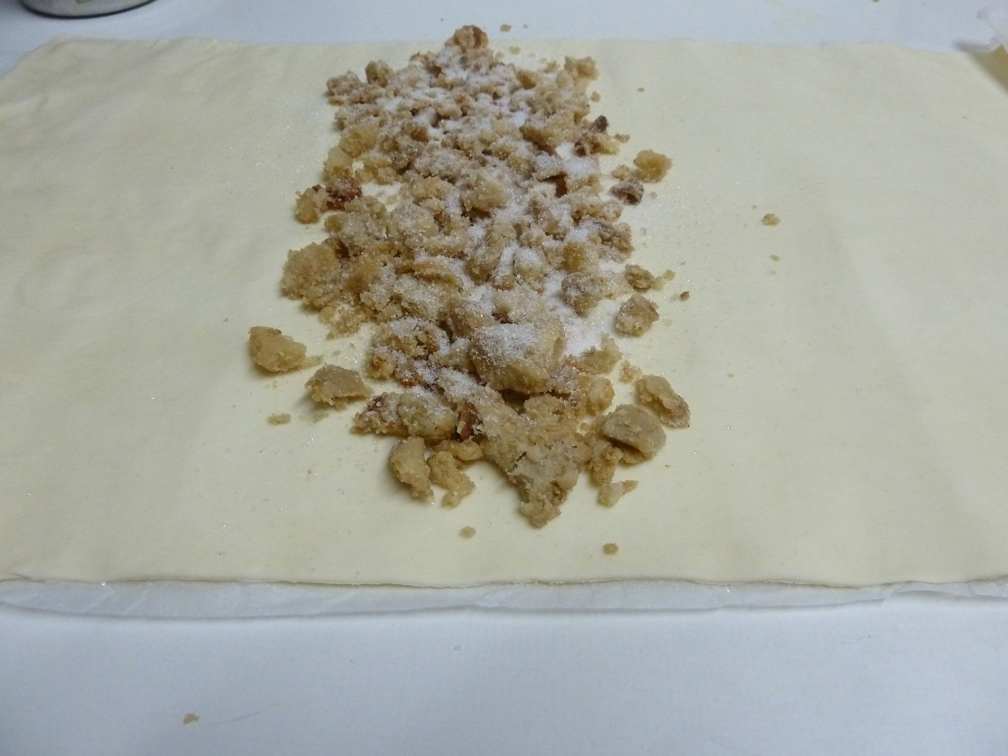 Volver a poner chicharrones y azúcar y tapar con el resto de la masa.
