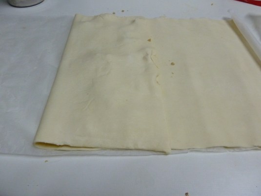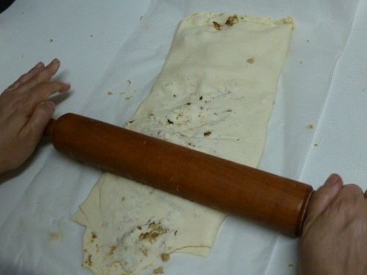Doblar un lado sobre la parte central y aplastar un poco con el rodillo.