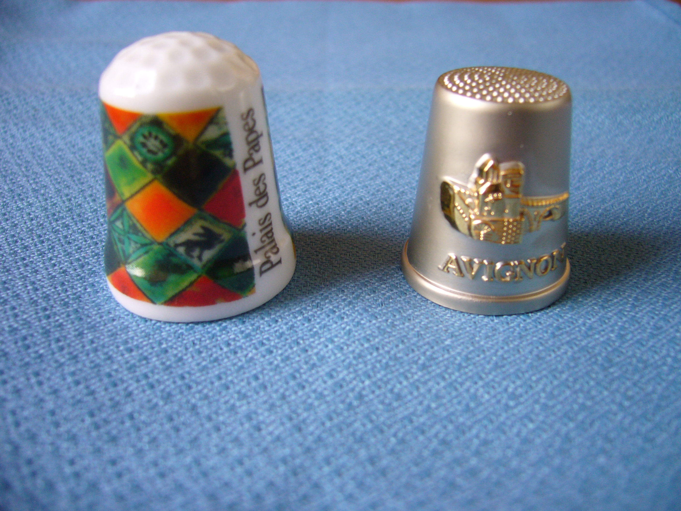 Vacaciones y souvenirs ( o recuerdos) van unidos y yo, por no ser menos, después de pasar unos dias en la Provenza, cómo no, he venido con alguno de ellos. Para seguir aumentando mi colección de dedales me propuse comprar uno en cada ciudad que visitaba, pero en alguna de ellas el precio era tan elevado para lo que ofrecían que opté por no hacerlo.
