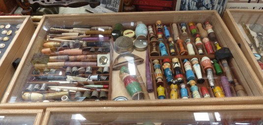 Ayer fui a Vic  (cuidad cercana a Barcelona) donde cada año se celebra la feria de antiguedades Vicantic. De entre los expositores destaco a Ricard que tenía  una fantástica colección de dedales (algunos medievales) y de alfiliteros de madera .