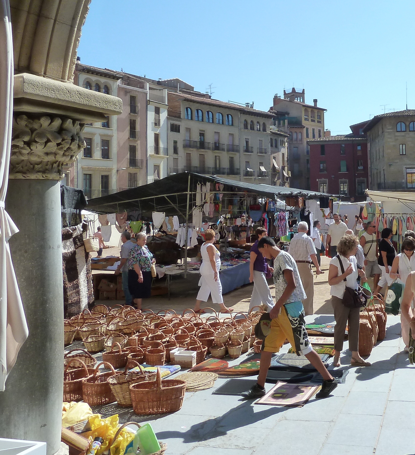 Los sábados hay mercado en la plaza mayor de Vic y da gusto curiosear por los puestos de fruta, cerámica, plantas y ropa que invaden toda la plaza.