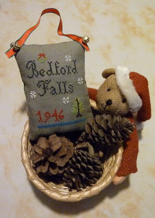 Tanya (The Sampler girl)  ha creado tres diseños relacionados con la película y he hecho uno de ellos para regalarselo a una amiga  que, como yo, en Navidad siempre tiene una cita con ¡Que bello es vivir!