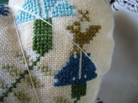 Najma ha organizado el SAL cesta de claveles de Niky´s creations. Está realizado en lino 32 con hilos DMC y teñido con té.