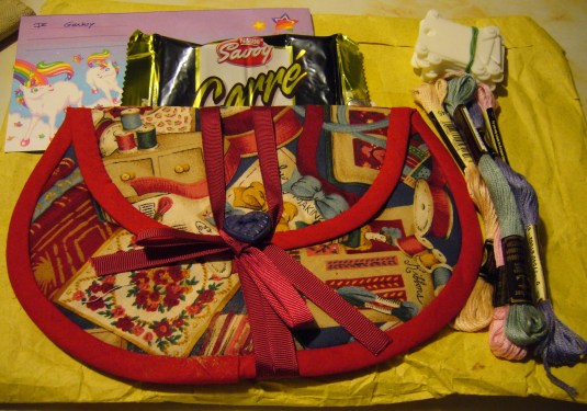 Genny, gracias por la bolsa y los hilos. El chocolate estaba RIQUÍSIMO (al final lo tuve que compartir 😡 )