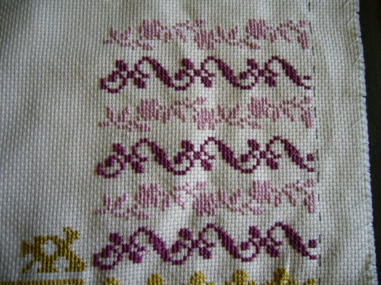 A mis bordados de punto de cruz, también le hago marcas con hilo negro para poder guiarme en el dibujo. Te esta quedando bonito.