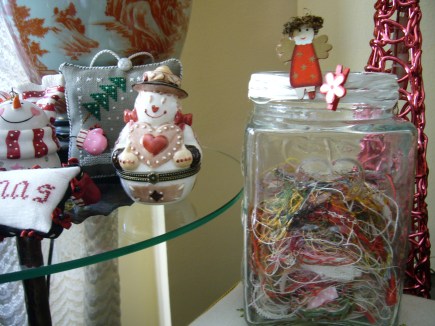En el cielo hay luna nueva y este es el último mes del TUSAL de It´s Daffycat . Mi tarro casi se ha llenado con los restos de los hilos de los trabajos que he hecho durante este año. Y el año próximo más porque … ¡ya me he apuntado al TUSAL 2012! … ¿Y tú?.