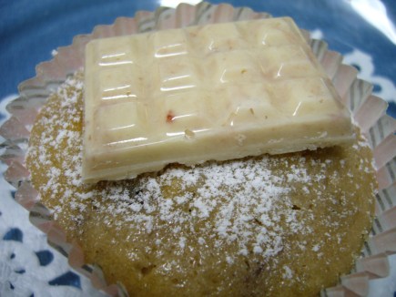 En un bol tamizamos la harina junto con la levadura, mezclamos con el azúcar y el chocolate blanco que habremos troceado.