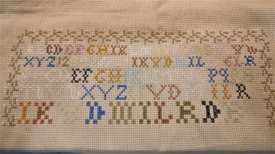 Atelier Soed Idee organiza un SAL gratuito de un sampler de 1853. Está reconstruido de la pieza original y como se puede apreciar, es  muy colorido . Lo ha dividido en 12 partes no muy grandes para que lo podamos ir bordando junto con otros proyectos que tengamos entre manos. El avance que os muestro es de las 4 primeras partes.