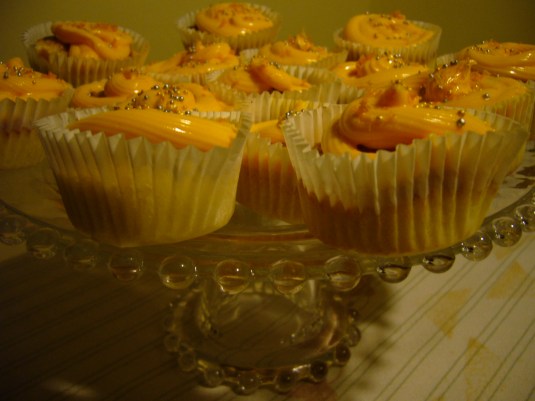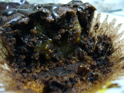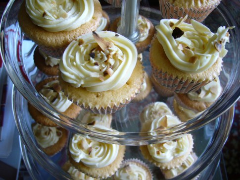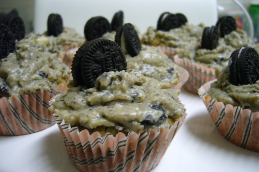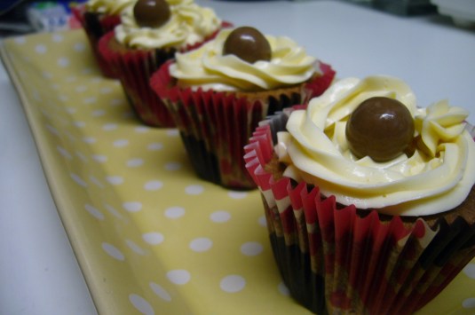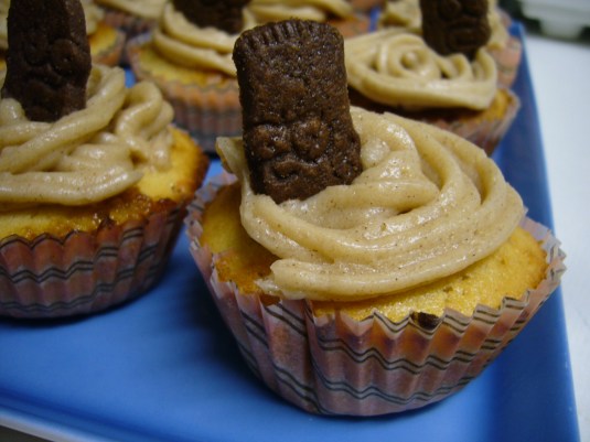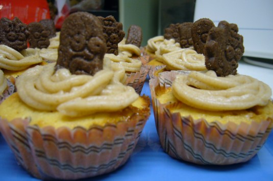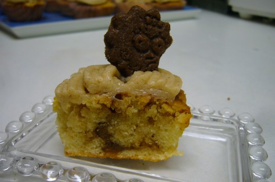 Poner las cápsulas de los cupcakes en una bandeja para 12 cupcakes y añadir 1 cucharada de masa de cupcakes. Con ayuda de un palillo, se hace un pequeño hueco en el centro de cada cupcake, y añadimos una cucharadita de la mezcla de canela. Con el palillo revolvemos con movimientos circulares. Volvemos a echar encima otra cucharada de masa de cupcakes y por último, otra cucharadita de mezcla de canela y removemos de nuevo.