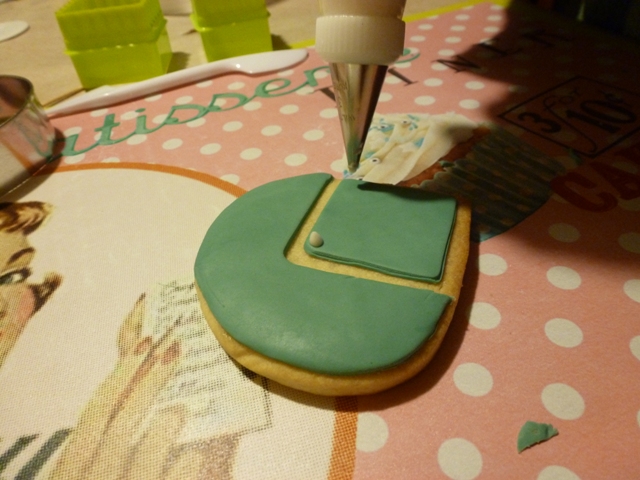 Para esta prueba hice dos modelos de galletas: unas con forma de estrella a las que hice un agujero en el centro con una boquilla y otras redondas a las que corté el centro con un cortador de silueta de ángel. Y para terminar, con un palillo, les hice una agujero para poder pasar una cinta de raso.