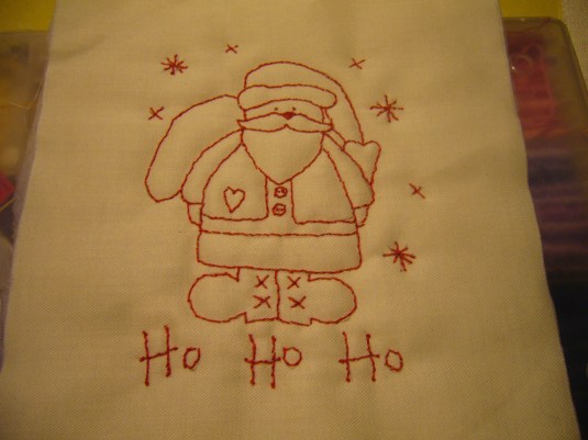 Último bloque de este SAL de motivos navideños bordados en redwork. Ahora solo falta su montaje final.