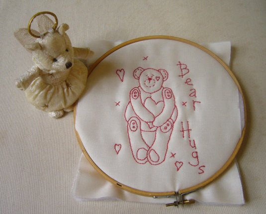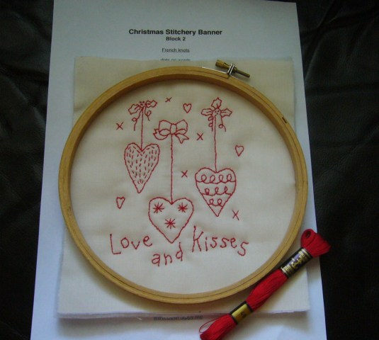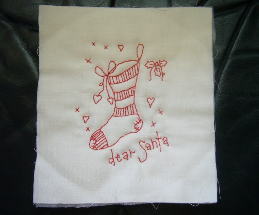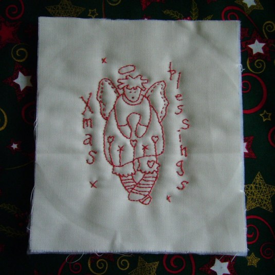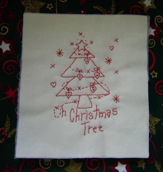 Primer bloque del SAL que ha organizado Lesley ( Sew Happy.Me ) en el que haremos un banner con diversos motivos navideños. Este es mi primer contacto con Redwork y espero mejorar la técnica en los siguientes bloques.