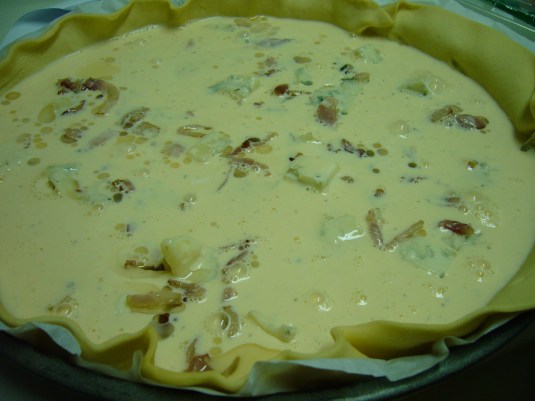 Mezclar y verter en el interior del molde sobre la pasta quebrada.