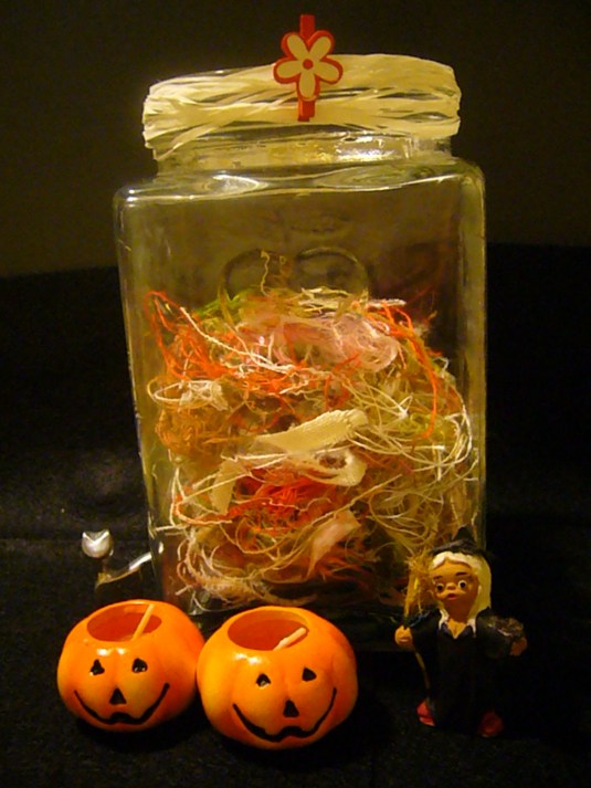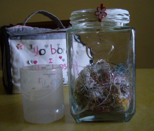 En el cielo hay luna nueva y este es el último mes del TUSAL de It´s Daffycat . Mi tarro casi se ha llenado con los restos de los hilos de los trabajos que he hecho durante este año. Y el año próximo más porque … ¡ya me he apuntado al TUSAL 2012! … ¿Y tú?.